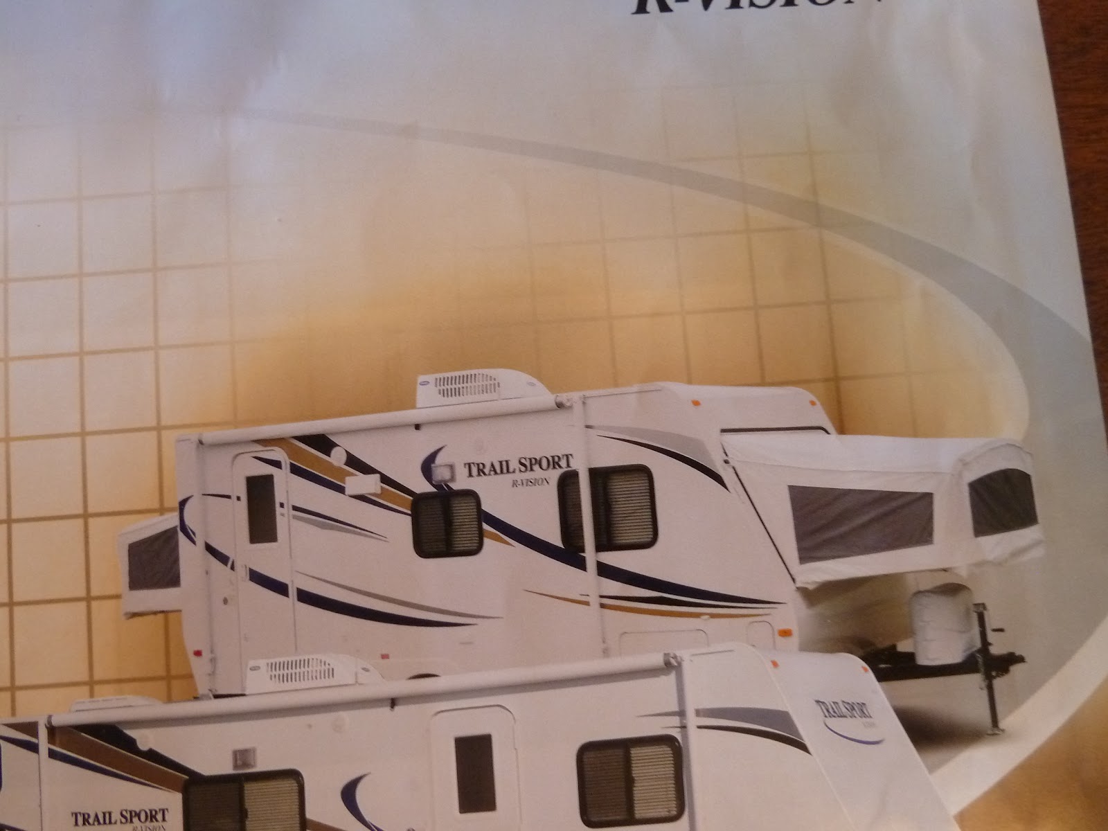 It actually looks like the one on the top, with the fold-down beds. We like that, because the camper can be used as a regular hard-sided camper with the beds up if it's really cold or we're in bear or cougar country, but, if we have our grandbabies along and need more sleeping space, down come the beds. It's two years old, but the bathroom, (yes it has a shower, potty and sink, hallelujah!), and oven, stovetop, refrigerator and sink have NEVER been used. It was apparently used only for sleeping in so we have a virtually new camper. The dealer is checking everything out and turning everything on before we pick it up. Our Expedition has to undergo a bit of special wiring and get a new tow hitch too.