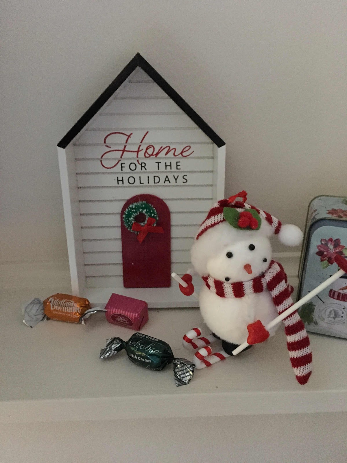 Anyway, here is my advent stocking this morning. Of course the little picture didn’t fit in the stocking but it sat behind it and I knew it went with today. I think it is so cute and I’m brainstorming where I want to put it. I always think I should have pretty things upstairs where guests can see them, but I spent 99.9% of my time in the family room so I also want them there. Such a dilemma. 😂 And more candy. My daughter does know me and chocolate doesn’t she? The snowman is a new one I bought this year at Hobby Lobby’s 50% off Christmas sale. I just thought he was cute.