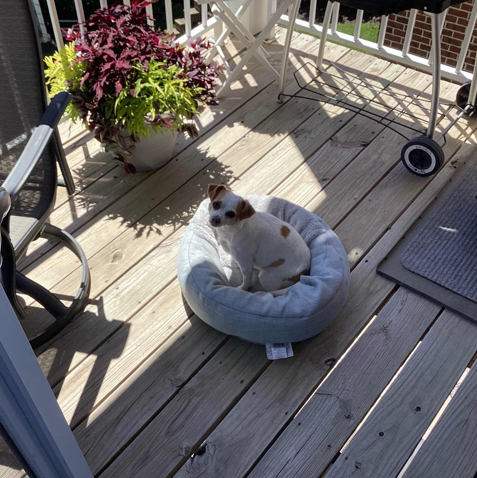 Zoey looks like that spot is her comfy place on nice days. I wish I had a patio to myself.. I'd be out there every day. Even when doing my work on the laptop.